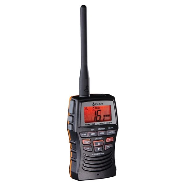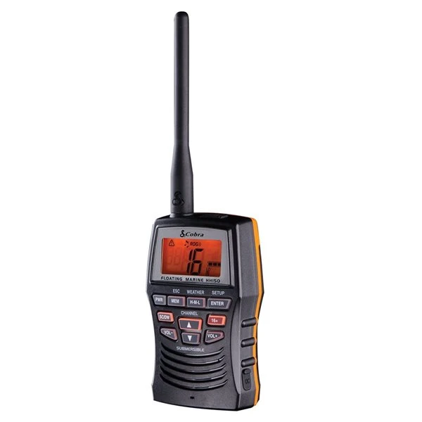 The MR HH150 FLT 3 Watt handheld floating VHF radio is convenient and quality built. The entry level, handheld floating marine radio is anything but basic. The large display, signal strength indicators, and maximum range give you unmatched reliability and peace of mind. When heading out on the water, a VHF marine radio is vital for communication and safety. With advanced safety features, easy menu navigation, and 24-hour access to emergency alerts and broadcasts, Cobra’s emergency radio has you covered.