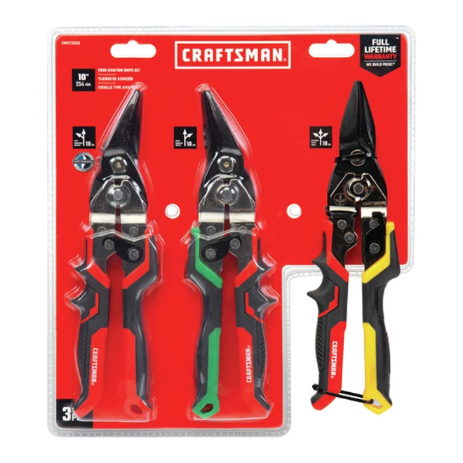 - Includes (1) Right Cut Aviation Tin Snips (CMHT73557), (1) Left Cut Aviation Tin Snips (CMHT73755) and (1) Straight Cut Aviation Tin Snips (CMHT73756)