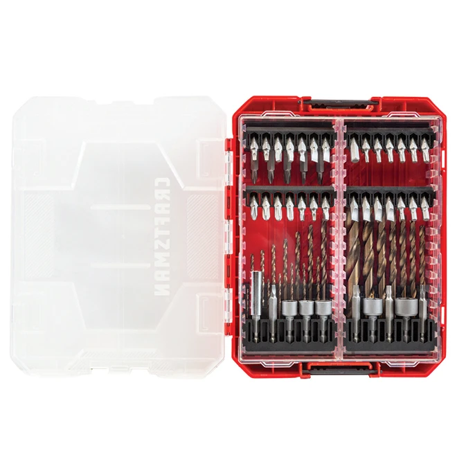 Complete your project with this Craftsman drill and driver set. The hex shank ensures that the bits fit securely into the chuck without slipping out. The drive bit set is made with shock-resistant steel to ensure optimal strength. The CNC-machined bits have tips that reduce stripping and cam out. This bit set contains 85 various drill and driver bits.