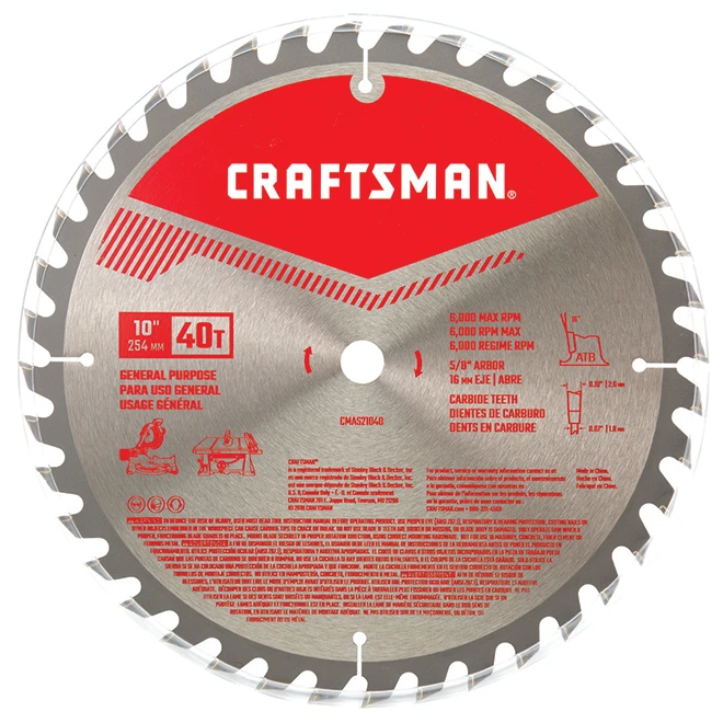 Craftsman General Purpose Circular Saw Blade – 10-in Dia – 40T – ATB Grind Geometry – Carbide Teeth