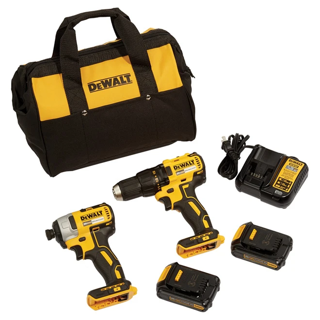 - Kit includes one DCD777 20V MAX compact Brushless drill/driver, one DCF787 20V MAX compact Brushless 1/4-in impact driver, two 20V MAX Li-ion battery packs, one charger and one kit bag