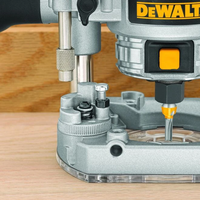 Complete your construction projects with this DeWALT compact router combo kit. It has a 1 1/4 hp motor that provides enough power for tough applications. The router has a flat base with a depth ring and clamping mechanism to ensure the motor remains in a locked position. This router combo kit comes with a 3-year warranty.