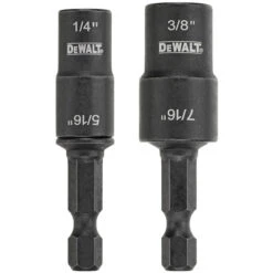 The DeWALT Impact Ready 2-piece double-ended nut setter impact driver bit set contains versatile bits you’ll use in a wide variety of construction and home improvement projects. The nut setters securely fasten wood, metal, and other materials into a solid backing, without rounding the nut head. As part of the Impact Ready line, this model delivers excellent performance in extreme-torque applications. They have detachable sockets for easy cleaning, and each bit is reversible for more versatility. Their industrial-strength magnet maximizes fastener retention. The bits have also undergone an advanced hardening process to resist the power of your impact driver. Sizes included : 1/4, 5/16, 3/8 and 7/16 in.