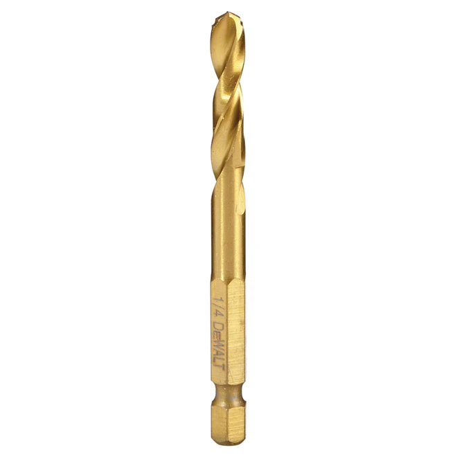 DeWALT Titanium Impact Ready Drill Bit – 1/4-in Dia X 3 3/16-in L – Pilot Point Tip – Hex Shank