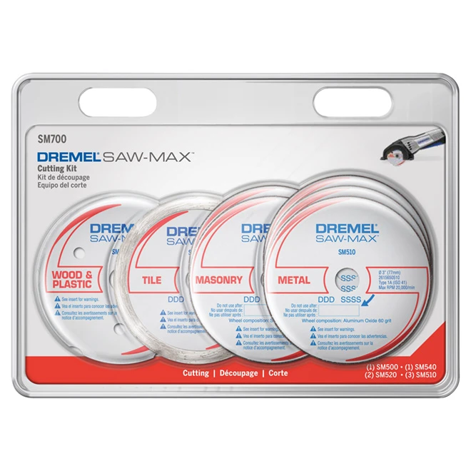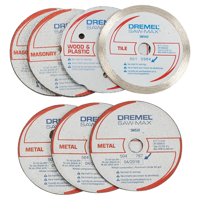 Get precise, burr-free cutting performance with this Dremel cutting kit. The 7 blades feature quality-grade components, such as diamond, carbide and aluminum oxide, to cater to different applications. This 7-piece set of Dremel saw max blades includes wheels for cutting through various types of materials, including wood, plastic, tile and metal.