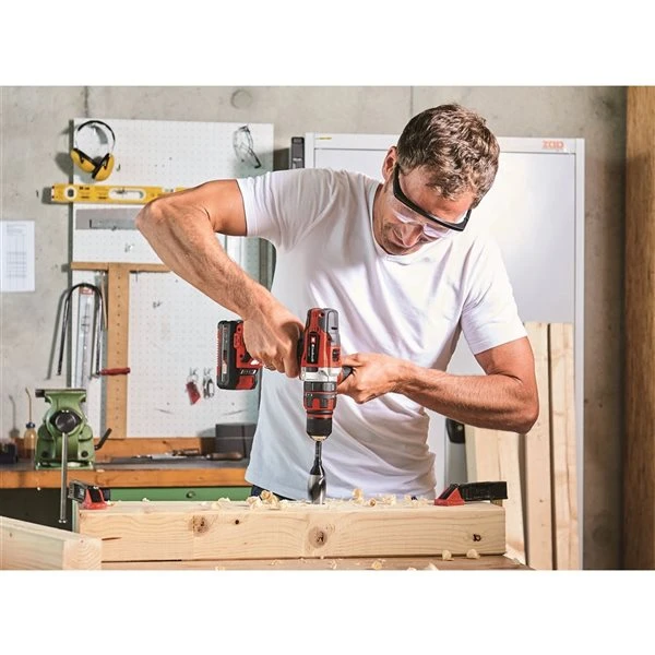 The Einhell TE-CD 18/40 Li-Solo cordless drill is a powerful and handy all-rounder for all jobs around the home, workshop and garage. For powerful drilling and screw driving it has high-performance two-speed gearing. Electronic speed control and adjustable 21 torque settings. Single-sleeve 12 in (13 mm) drill chuck holds the accessory you want to use. For exceptionally easy handling it has an ergonomic design and Softgrip. The LED lighting lights up dark areas for optimum results. The special impact mechanism protects your wrists from high torsional forces. You can use it to screw in large and long screws effortlessly. Battery-operated: Permanent operational readiness is ensured by the lithium-ion technology with zero self-discharge. The rechargeable battery and charger are available separately, for example as a practical PXC starter set in different performance levels. This kit comes in a carrying case. Recommended batteries for maximum results: 2.0 or 2.5 Ah
