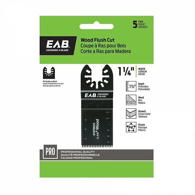 EXCHANGE-A-BLADE EAB Professional Oscillating Flush Cut Blade – 1 1/4-in W – 1 1/2-in Cutting Depth – High-Carbon Steel – 5 Per Pack