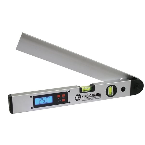 Every drywaller, framer and trimmer will tell you a truly square corner is hard to find. It is very difficult to apply baseboard or crown moulding to imperfect corners. That is why the King Canada KW-400 digital angle finder is so handy. First, it will help you find the actual angle of the corner, then it will help you set your mitre saw to cut perfectly inside and outside corners every time. The digital angle finder is compact, accurate and the perfect tool to show you the way to perfect corners.