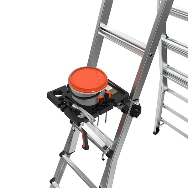 The Project Tray is a multi-use accessory designed for your Little Giant multi-position ladder. The Project Tray rests securely on your ladder’s rungs and acts as the perfect tool tray while you work. The grooves and slots hold almost any tool you will need, including hammers, drills, screwdrivers and power cords. It even has a place to hold your paint can. The magnetic tray holds screws and nails, so you won’t have to worry about losing them.