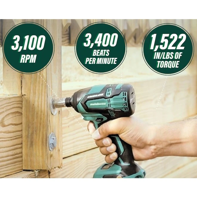 - Professional grade motor produces 1,522 in/lbs of turning torque, 3,400 BPM and up to 3,100 RPM to power through tough jobs