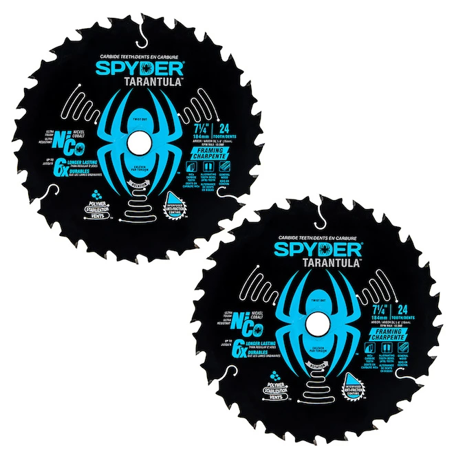 Be the first to review “Spyder Tarantula Framing 7.25-in 24-Tooth Tungsten Carbide Steel Circular Saw Blade 2-Pack” Cancel reply
