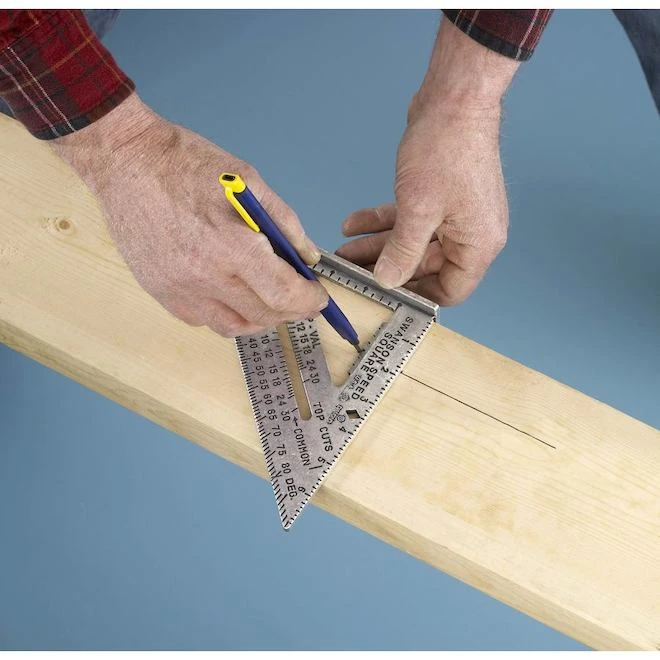 - Gradations included for marking common, hip, valley, and jack rafters; Useful for determining and marking angles and making square cuts on boards